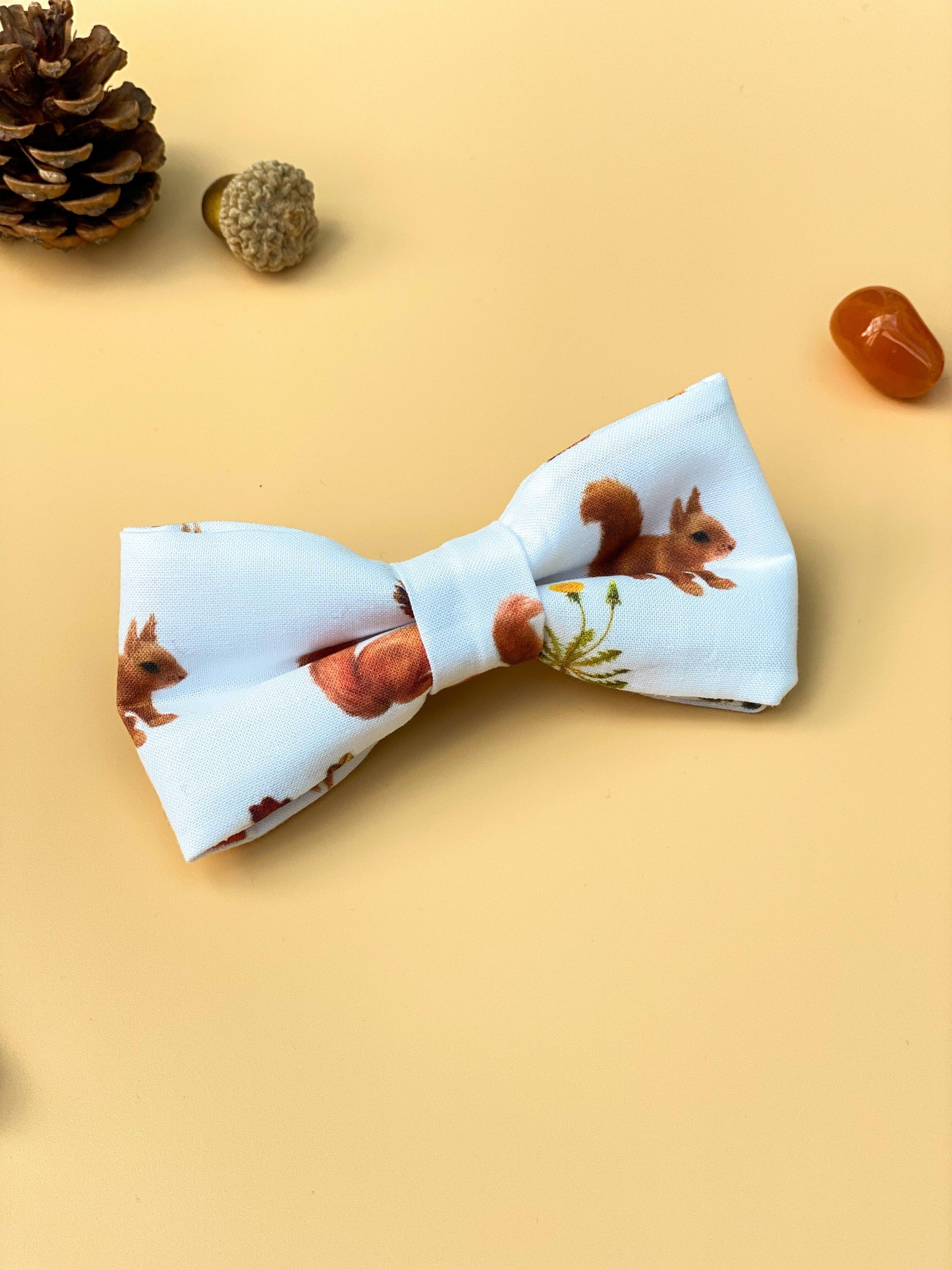 The Bow ties are easy to slip on and off a pets collar by the simple elastic attached to the back of the bow ties. Our bows are lined to keep there structure keeping your pup stylish all day !